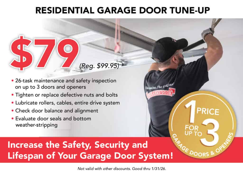 A fourteen (14) point maintenance tune-up and safety inspection that is performed on up to three garage doors at your home.